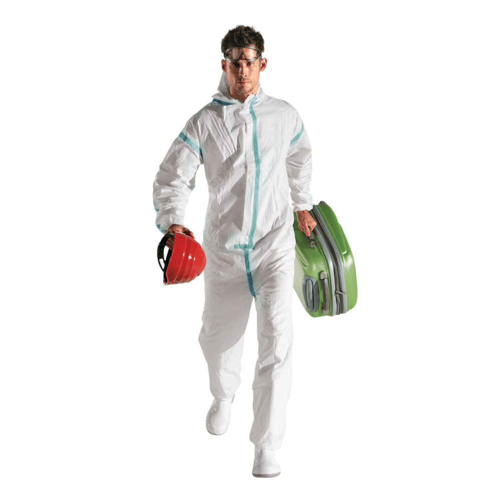 Η ολόσωμη προστατευτική φόρμα υψηλής πυκνότητας polypropylene συνδυάζει εξαιρετική μηχανική αντοχή, tear resistance και αυξημένη προστασία χάρη στη breathable microporous film (MPF) μεμβράνη. Είναι απωθητική σε σκόνες, ομίχλες, πιτσιλίσματα και ανόργανα υγρά, ενώ το υλικό της προσφέρει αξιόπιστη προστασία απέναντι σε μολυσματικούς παράγοντες.